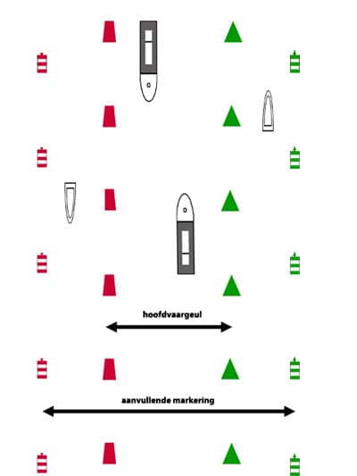 • laterale betonnin: deze maakt de loop van het vaarwater zichtbaar;